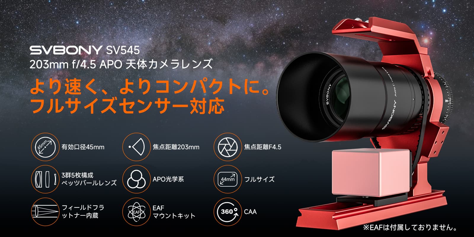 【操作が簡単】SV545にはEAFマウントキット(EAFは含まれていません)が装備されており、自動で正確な焦点合わせを実現できます。正確な撮影角度を素早く簡単に取得できます。(注:現在のバージョンは第